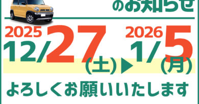 NEWS STAFF ブログ 年末年始休業のお知らせ【12/29(金)~1/4(木)】 2023年12月20日2023年12月23日 エムワイ スタッフ スズキハスラー お知らせです みなさんこんにちは。 エムワイカーライフの山口です。 今回は「年末年始休業のお知らせ」のご案内です 2023年12月29日(金)から2024年1月4日(木)まで休業させていただきます。 そして。。。 2024年1月5日(金)は16時まで営業します。 2024年1月6日~7日は休業 2024年1月8日(月)から通常営業します。 休業明けて、さらにスタッフ一同パワーアップしてまいりますので 今後とも、よろしくお願いいたします。